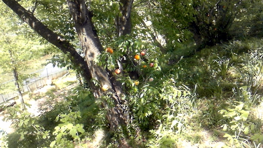 一見すると、と言って分かってほしかったのですが、ケイタイのカメラがダメ過ぎて(オマケに撮り方もダメだった)よく分からないと思いますので仕方なく解説しますと、リンゴやらオレンジやらの果物が1つの木に実っている、ように見せて実は枝にブッ刺さっている奇妙な光景です。