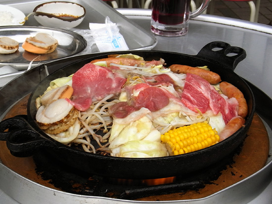 のはずが、ちょっと失敗。風が強くてとても食べ難かった。そして鉄板から離れた肉や野菜を容赦なく冷ましていく。