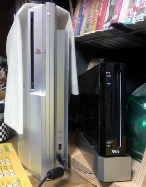 写真はWiiくんとPS3先輩(今や旧型)。撮影の為に並べた訳じゃなくて、しばらくここが彼らの席となりました。