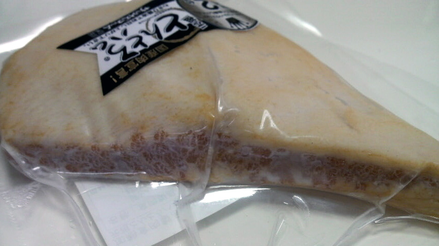 かつて「ハムの日」としてハムを祭り上げる行事を組んだ我々としては見過ごせない「これを食せずしてハム通とはいえない」という挑戦的なメッセージと、これまで食べたことがない白いハムの姿に買わずにはいられませんでした。見た目からして美味しそう。