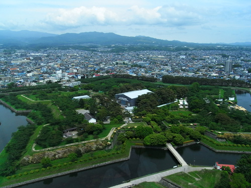 観光にはその横に建つ五稜郭タワーの方が適任で、昇った先には五稜郭の全貌と市内や山々の風景が楽しめます。今なら景色よりも土方歳三像にテンションを上げていらっしゃる若い子たちも見られます。ここでの本来の主役・榎本武揚などその他大勢扱いのようです。